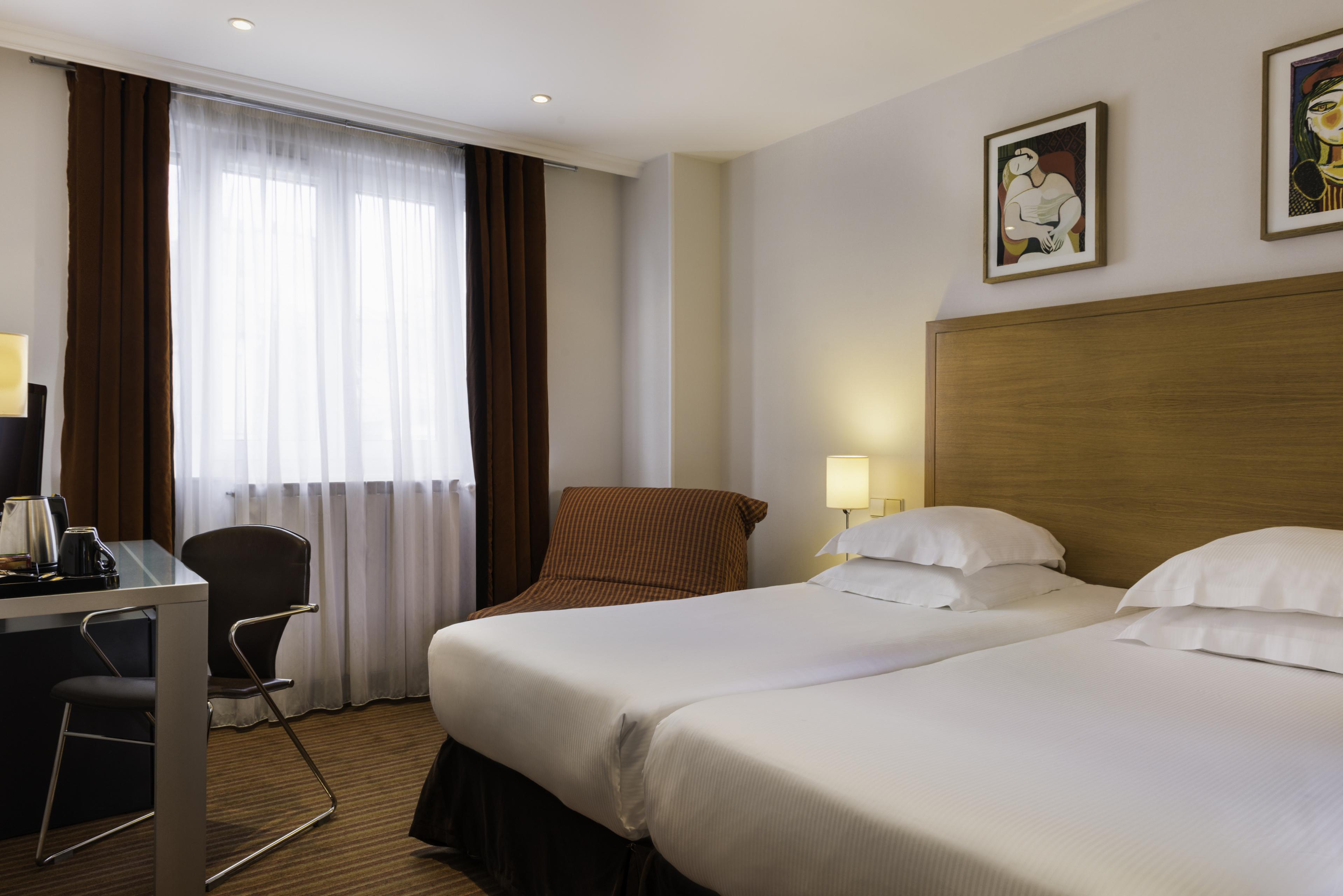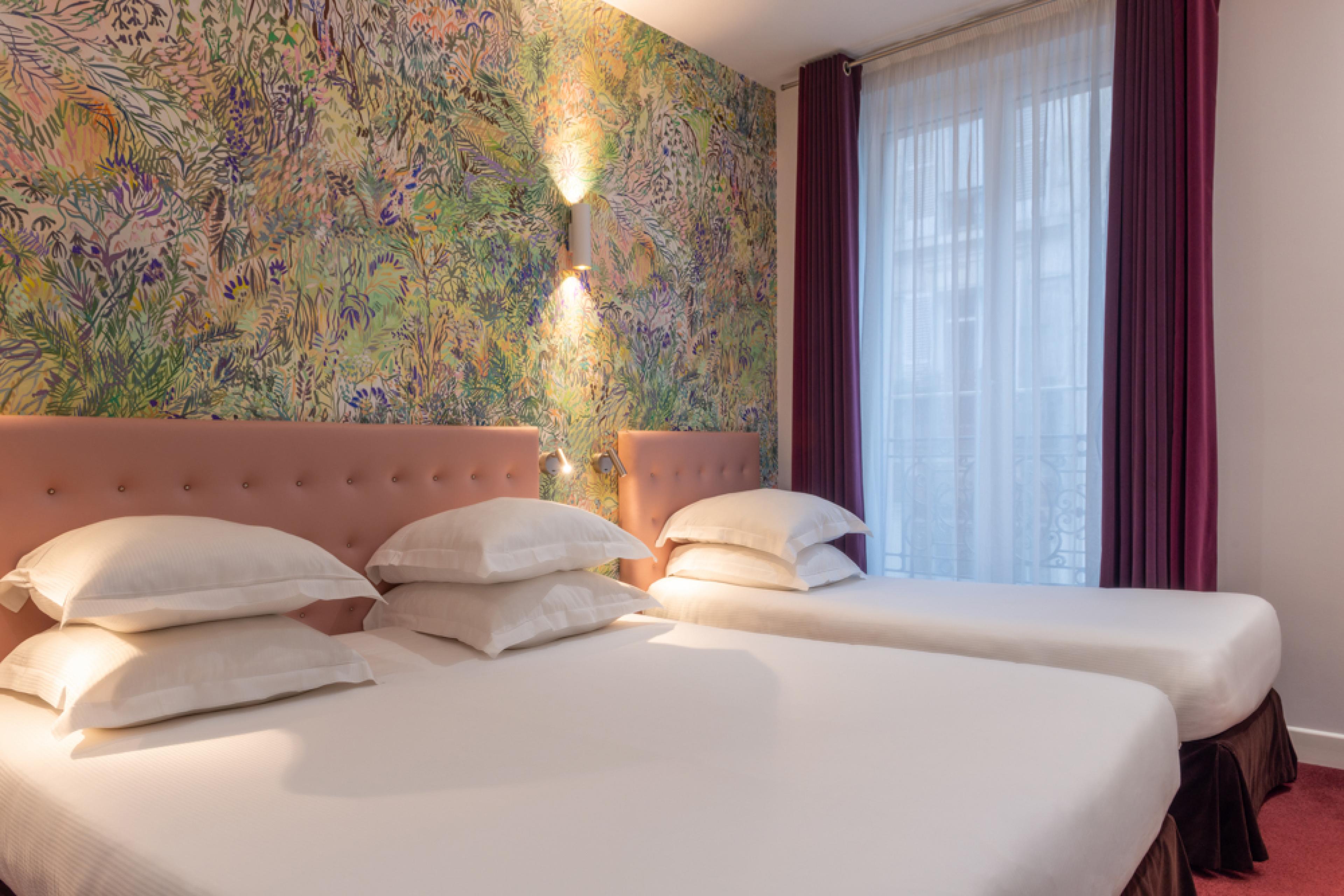 Trabalhámos para oferecer-lhe quartos de qualidade, com a decoração elegante e harmoniosa. Nossa roupa de cama de qualidade lhe traz um conforto máximo para descansar durante as noites depois dos seus passeios e saídas na capital francesa. Os banheiros privados dotados de uma banheira e de uma ducha em telhas quadradas com cores limpas irão trazer ao seu quarto o ultimo detalhe de design.